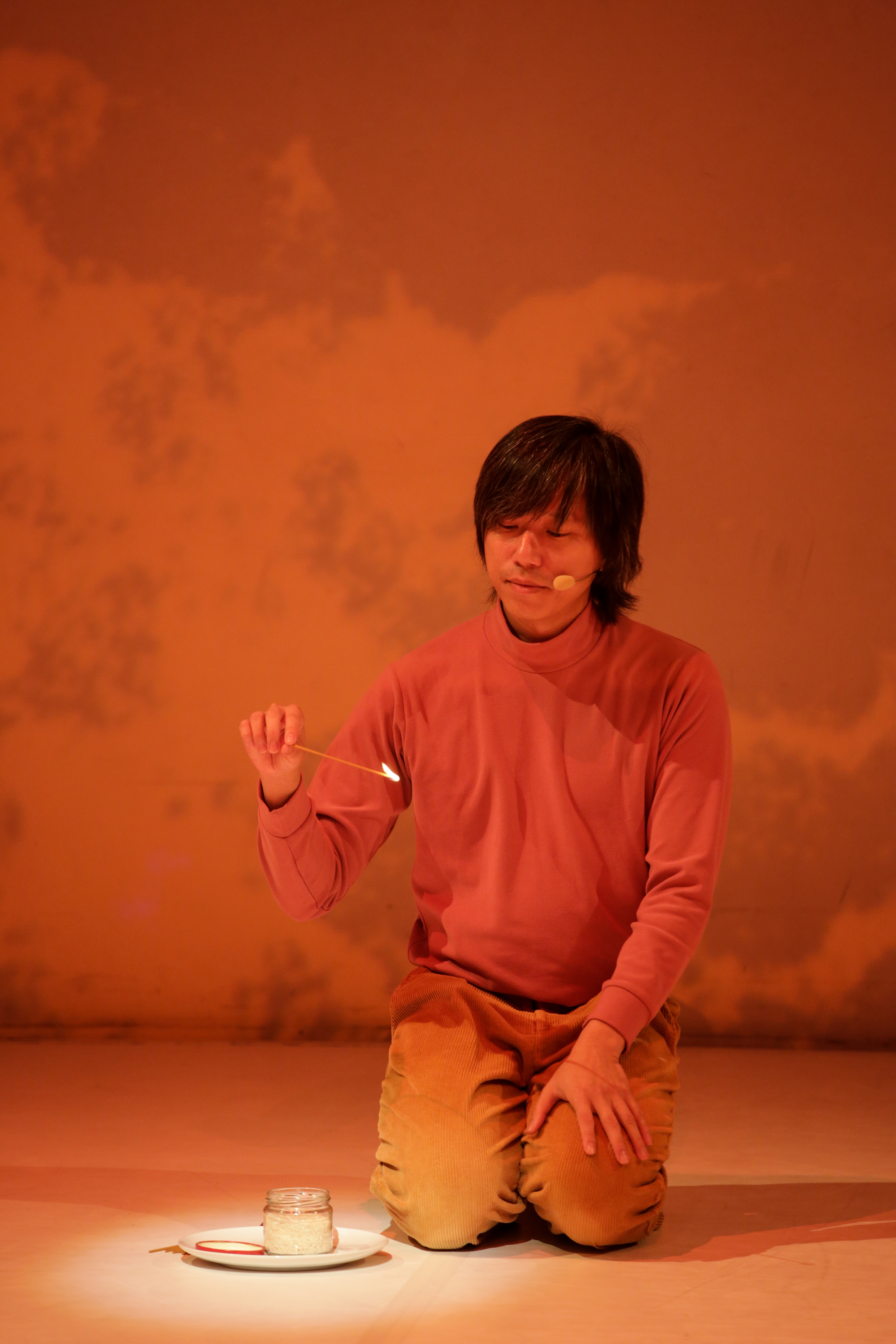 The theme for today’s ritual is fire and is dedicated to Lee’s ex-partner whom he lost to pancreatic cancer. Lee enters the stage and says that he has been performing for 15 years, but only now has his art come so close to his personal life. It is a bold declaration, and observing such a frank confession is satisfying.
